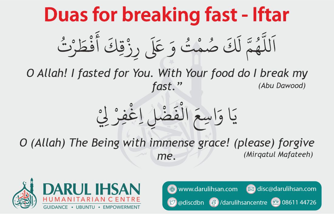 O Allah! I fasted for You. With Your food do I break my fast.”